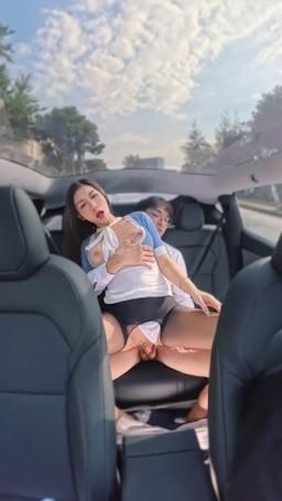 車上再朋友面前露淫蕩的粉色奶頭,超級色